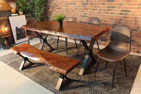 We create rustic slab furniture from trees that have fallen. Walnut live edge dining table and matching bench. We stock over 250 rough sawn slabs, lumber and rounds ready for your next woodworking project. A rustic metal base with a rustic live edge wood top combine beautifully in the live edge collection.