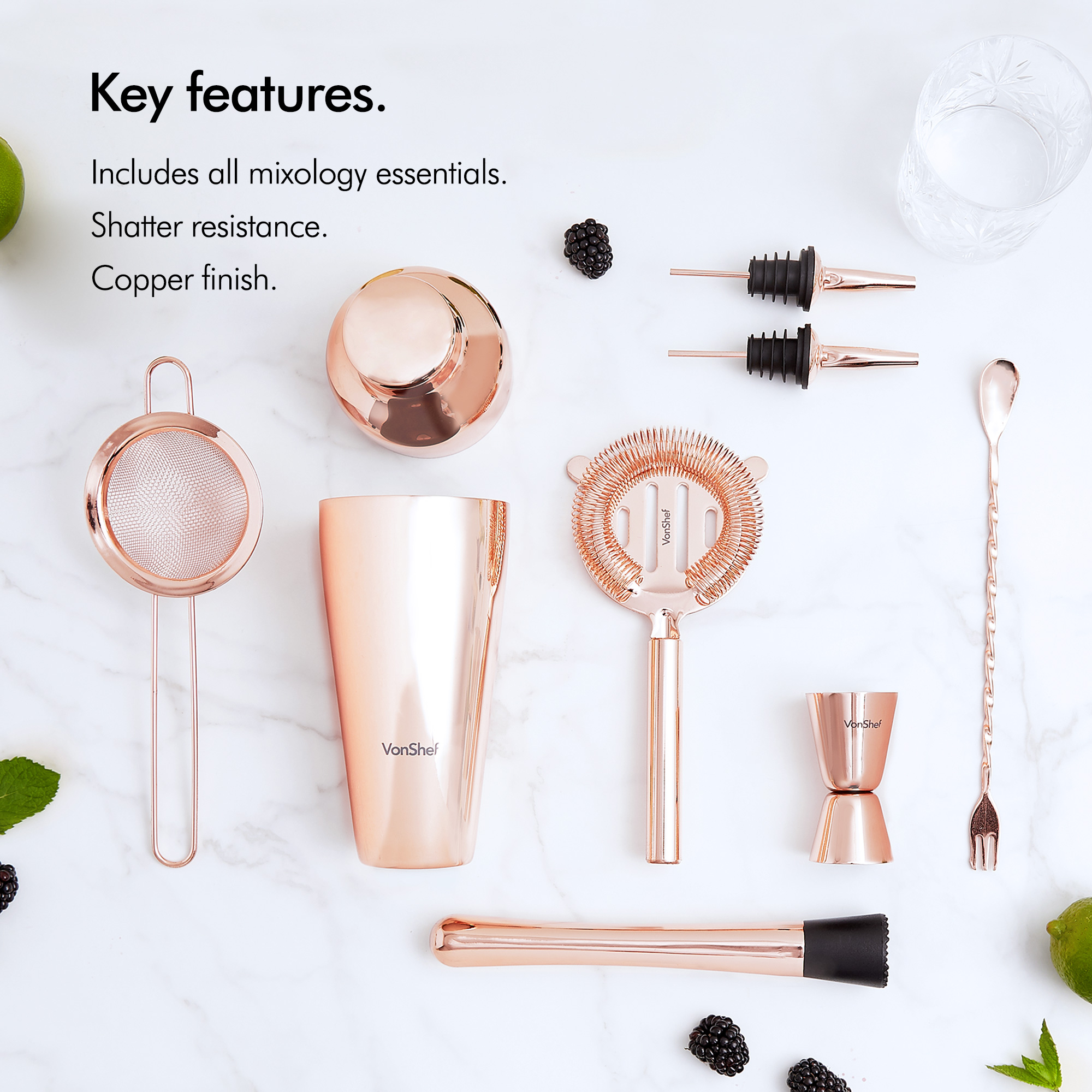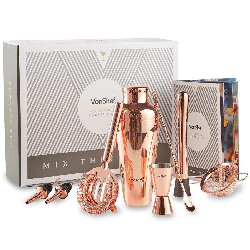 Vonshef black cocktail making set 11pc parisian shaker set drinks party gift. Vonshef premium parisian cocktail shaker barware set in gift box with recipe guide, cocktail strainers, twisted bar spoon, jigger, muddler and pourers, copper, 9 piece. Go bold with your barware! 800 x 800 jpeg 82 кб.