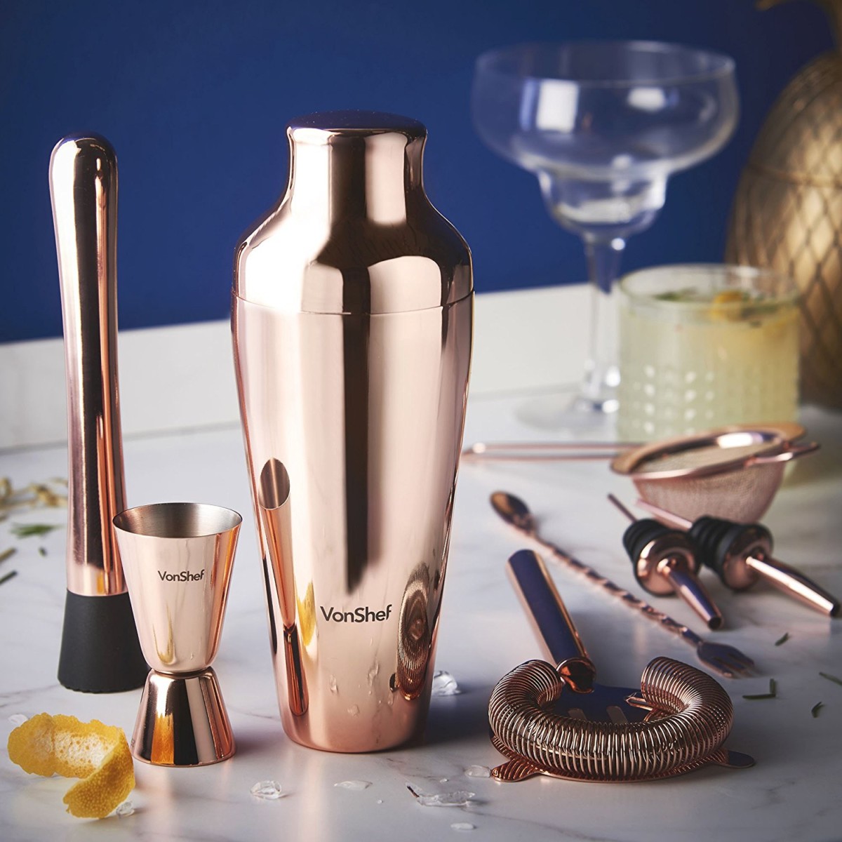 View Copper Cocktail Set Vonshef UK. The parisian cocktail shaker is made from robust stainless steel to withstand even the most vigorous mixing and shaking. Vonshef 9pc copper parisian cocktail set.
